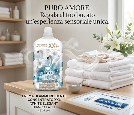 Puro Amore Crema di Ammorbidente Concentrato XXL White Elegant | Formato Maxi 1806 ml (86 Lavaggi) | Profumazione Persistente e Stiratura Facile
